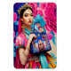 Image d'une princesse de mode florale avec sac à main, ceinture d'or, bijoux et couronne.