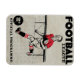 Logo du joueur de football vintage d'un célèbre footballeur qui frappe une balle en cuir.