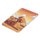 Illustration stylisée des grandes pyramides de Gizeh et du Sphinx sous un ciel orange vif et nuageux, évoquant un sentiment d'émerveillement ancien.