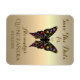 Un papillon noir unique, élégant, aux ornements floraux mexicains en combinaison avec un arrière - plan en feuille d'or. Whimsical, extraordinaire, adorable Quinceanera Save The Date aimant flex.