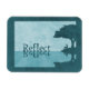 Dessin texturé vert-bleu représentant la silhouette d'un homme assis sous un arbre près d'un étang qui contemple. Le mot "Reflet" repose sur la surface du lac, le texte et les ombres reflétés dans l'eau parfaitement calme.