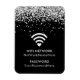 Créez votre propre réseau Wifi et votre mot de passe magnétique sur un arrière - plan d'art numérique de glam girly. Faux parties scintillant argent brillant contre un arrière - plan couleur noire personnalisable. Tous les éclats de ce design moderne sont des graphismes numériques qui s'impriment comme une photo.