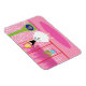 Ce Retro In the Pink Flexible Magnet ressemble à une scène d'une comédie romantique des années 60. Le design minimaliste montre une femme sophistiquée dans son appartement penthouse ultra kitsch et ultra rose. La chambre est ornée d'un mur en briques roses avec des lignes de grout blanc. Devant le mur, une cheminée verte à cônes avec feu rugissant. A travers des portes coulissantes en verre, nous voyons un balcon rose avec une balustrade blanche. Un plante tropical luxuriant se trouve dans un aqua fleuri. La vue depuis le balcon est de la silhouette d'un horizon de grande ville. Bien sûr, la silhouette est rose ! Une lune jaune croissant est dans le ciel. Posé sur un rosé chaud, le tapis de shag dans l'appartement est la principale dame de ce design. En contraste saisissant avec le monde rose qu'elle a créé, la belle blonde porte un raccord de forme, noir, col scoop avec une longue jupe blanche flarnée et ornée de motifs en plumes noires. Avec ce design, vous pouvez aussi regarder le monde à travers des lunettes de couleur rose!