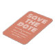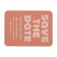 Retro Save the Date Magnet en orange et blanc avec un design moderne branché de typographie. Ce modèle tendance et élégant de sauvegarde de l'aimant de date est facile à customiser avec vos détails mariages. Pour plus d'options de personnalisation, cliquez sur le bouton Customiser.