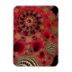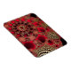 Un design fractal étincelant avec des spirales ornées de rouge foncé et vif, incrustées de filigrane doré comme des coquillages métalliques et cloutées de rubis scintillants.