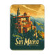 Une charmante représentation vintage de Saint-Marin, l'une des plus anciennes républiques du monde et un microÉtat entouré par l'Italie. Le design reflète l'architecture historique de l'ancienne ville de Saint-Marin située au sommet d'une colline, avec ses murs médiévaux, ses tours et ses ruelles pavées étroites. Rendu dans un style nostalgique, l'oeuvre évoque le charme intemporel et la richesse culturelle de cette enclave unique, invitant à explorer sa signification historique et ses paysages pittoresques.