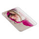 Aimant d'annonce de naissance de bébé fille avec photo pour présenter votre nouveau-né. Avec une photo de bébé en pleine page, un prénom en écriture cursive rose et les détails de naissance.