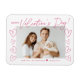 Aimant de Saint Valentin moderne avec "Heureuse Sainte-Valentin" dans un script magenta branché avec des coeurs dessinés à la main le long des côtés du design sur un arrière - plan blanc. Votre photo horizontale est affichée près du milieu de la conception. Personnalisez l'aimant photo de la Saint Valentin en ajoutant votre nom et l'année en lettres magenta.