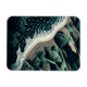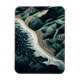 Serene Shores: This stunning top-down illustration the harmony of land and sea, featuring waves wgently breaking on sandy beaches with lush green mountains in the background. Rendered in soothing shades of dark blue-green, the artwork evokes a sense of tranquility and balance. The intricate details of the ocean’s patterns meeting the shore, paired with the trees lining the water’s edge, enhances the peaceful atmosphere. Created in a woodcut print style with simple lines and a flat design, the piece is reminiscent of hand-drawn animation, offering a timeless, serene depiction of nature's beauty.