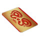 Double Chinois rouge Snake coupé en papier avec l'idéogramme chinois jaune pour Snake au centre sur un cercle rouge + "Bonne année" en anglais et chinois sur papier texturé doré (image imprimée) en arrière - plan. Conception sur aimant photo flexible horizontal. Carte de voeux, Carte postale de vacances, produits artisanaux et plus bientôt... Parfait pour le Nouvel An Chinois du Serpent ou Anniversaire (personnes nées dans l'Année du Serpent).