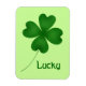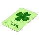 Un mignon aimant vert avec un trèfle à quatre feuilles sur lui.
