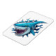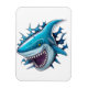 Shark's Mouth: The most striking feature is the open mouth filled with rows of sharp teeth. The teeth are depicted in white against the darker purple interior of the mouth, creating a stark contrast that emphasizes the aggressive nature often associated with sharks.