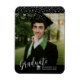 Partagez votre fête spéciale avec votre famille et vos amis. Cet aimant de graduation moderne présente un élégant script argenté "Graduate" et des confettis sur un arrière - plan noir. Vous pouvez personnaliser le texte et les photos. Des fournitures et des cadeaux de fête correspondants sont disponibles dans mon magasin BaraBomDesign.