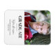 Cet aimant de graduation moderne est doté d'une typographie simple et d'une grande photo. Une photo horizontale du diplômé est en haut, avec le mot "Graduate" écrit dans la capitale branchée en bas. Sous la typographie, ajoutez le nom du diplômé en calligraphie script, avec l'école et l'année de diplôme au bas de la carte. La typographie est noire contre un arrière - plan blanc.
