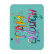 Beautiful splattered "I Am Enough" Affirmation magnet Full of Colors, over a teal background. To cheer you up every day, and make you remember that you are enough and that you are an amazing human.