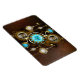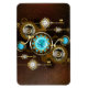 Turquoise lenses with antique watch with brass gears and golden keys on rusty, brown background. Steampunk style.