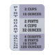 Carte commune de conversion pour les mesures des liquides en pinte, pinte et gallon. Le tableau parfait pour vous aider dans votre cuisine et votre cuisson. Aimant frigo ou lave-vaisselle pratique pour vous aider à convertir les mesures. Tons gris mauve.