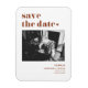 Réservez la date! Annoncez votre date de mariage à votre famille et amis avec la terre cuite et blanc enregistrer la date de l'aimant photo. Il présente une typographie audacieuse. Personnalisez en ajoutant une photo, des noms, la date et d'autres détails. Cette photo en terre cuite enregistrer la date magnétique est disponible en différentes couleurs et cardstock.