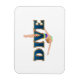 Juste le mot simple, Dive, dans un texte bleu vif et des graphismes homme ou femme plongée optionnels sur t-shirts, sweatshirts, bouton, magnets, et autres cadeaux. Idéal pour le plongeur, l'entraîneur, ou les parents, ou toute personne qui veut plonger dans la vie avec gusto.