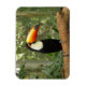 Dans une forêt tropicale luxuriante, un toucan vibrant perche gracieusement sur une branche d'arbre recouverte de mousse, son bec surdimensionné et frappant contraste brillamment avec le feuillage verdoyant. Le plumage irisé et le regard intense de l'oiseau font une image captivante, mettant en valeur la beauté et l'allure exotique.