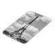 L'emblématique Tour Eiffel se dresse à Paris, photographiée en noir et blanc.