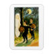 Illustration de carte de vœux vintage Halloween montrant des enfants « trick or treat » effrayés par un fantôme dans les bois.
