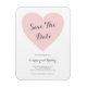 Magnat Save the Date avec un design simple avec "Save the Date" dans une typographie fantaisiste à l'intérieur d'un coeur rose pastel. Une façon moderne d'annoncer la date de votre prochain mariage qui fait office de gardien.