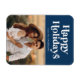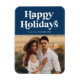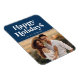 Aimant photo de vacances moderne avec "Happy Holidays" en haut en blanc, style rétro avec un arrière - plan bleu marine. Personnalisez l'aimant de vacances moderne avec votre nom et votre photo. Conçu pour coordonner avec notre collection de vacances Retro Typography.