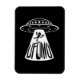 Illustration d'un ovni enlevant une personne qui pense que des aliens rock avec du texte de l'UFOMG. Mots clés : OVNI, OMG, non identifié, vol, objet, oh, mon, dieu, espace, vaisseau spatial, alien, martien, dessin animé, diable, cornes, enlèvement, quatrième, type, humour, soucoupe
