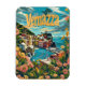 Une description captivante et nostalgique de Vernazza, un des villages pittoresques des Cinque Terre en Italie. Le design capte les maisons aux couleurs pastel vibrantes accrochées aux falaises, le charmant port rempli de bateaux de pêche et le littoral accidenté qui rencontre les eaux azurées de la mer Méditerranée. Rendu dans un style vintage, l'oeuvre évoque la beauté enchanteresse et le charme intemporel de Vernazza, invitant les spectateurs à explorer ses vues pittoresques et sa richesse culturelle.
