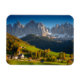 Magnet photo rectangulaire du village St. Magdalena avec son église dans le Villnoesstal dans le Tyrol du Sud, Italie, pendant la saison d'automne avec les montagnes Geisler Dolomites dans l'arrière - plan.