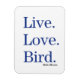 Le design Live, Love, Bird est idéal pour l'observateur d'oiseaux ou les amoureux d'oiseaux dans votre vie! Birds & Blooms est le numéro 1 du magazine d'oiseaux et de jardins en Amérique du Nord. Nous sommes fiers de célébrer la "beauté dans votre propre jardin" couvre un large éventail de sujets tels que l’observation d’oiseaux, l’attraction des colibris, la construction de maisons d’oiseaux, le jardinage des papillons, l’alimentation des oiseaux pour moins, la croissance des légumes, les récits d’expériences d’observation des oiseaux des lecteurs, et bien plus encore. Nous nous rendons compte que les jardiniers et les ornithologues partagent souvent les mêmes intérêts. Cela a du sens. Si vous voulez attirer les oiseaux à votre jardin, le jardinage et l'aménagement paysager sont une excellente façon de le faire. Et quand un jardin est en fleurs, ajouter le mouvement des oiseaux colorés et leurs chansons joyeuses rend un jardin vivant. Visitez www.birdsandblooms.com/zazzle pour en savoir plus !