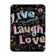 Un design inspirant et positif avec les mots en direct, amour et rire. C'est génial pour aller bien, anniversaire, merci et plus encore.