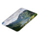 Aimant souvenir rectangulaire du fameux fjord Geirangerfjord, paquebot de croisière et village de Geiranger entre les montagnes de Norvège.