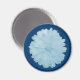 Ce joli aimant présente une photo d'une fleur de marigold manipulée pour en faire une couleur bleu pâle glacé. La fleur est assise sur un arrière - plan bleu foncé.