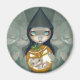Une de mes grandes soeurs de sorcière aux yeux - très solennelle - avec son bébé magique né d'un citrouille! Oui ! Je ne sais pas exactement ce qui se passe dans ce tableau (je n'ai pas été au courant de cette cérémonie) mais il est à la fois mignon et mystérieux ! Ma propre peinture acrylique originale.