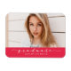 Envoyez à vos proches un aimant photo pour célébrer votre diplôme. L'aimant photo graduation comporte une police de script stylisée, un arrière - plan rouge et des espaces réservés pour une image et un texte personnalisé.