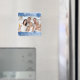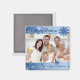Joyeux aimant photo de Noël avec design design flake bleu et blanc, personnalisable avec votre propre photo de famille, mignon et amusant à décorer votre cuisine ou comme cadeau pour la saison des Fêtes, également disponible en cartes, timbres et autocollants assortis.
