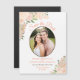 Ces magnifiques cartes magnétiques de mariage "save the date" présentent un design floral peint à la main rustique mais élégant avec votre photo dans un cadre ovale entouré de roses, de fleurs et de fleurs à l'aquarelle dans des tons de corail, de pêche et d'orange clair, avec une profusion de feuilles d'eucalyptus, de verdure et de feuillage. La typographie présente des lettres en écriture fantaisiste. Cette carte chic et bohème est un excellent moyen de s'assurer que vos amis et votre famille sont au courant de votre mariage imminent.
