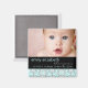 Introduisez votre petite fille douce avec ce joli aimant photo dans un élégant design bleu turquoise et blanc damassé. Il est facilement customisé avec votre photo bébé, nom et détails de naissance et fait un merveilleux faire-part unique à partager avec vos proches.