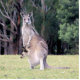Une photo souvenir parfaite d'Australie, cette image montre une mère, ou maman, kangourou debout avec son bébé Joey qui sort sa tête de sa poche en se tenant debout et en paissant dans l'herbe devant les arbres de l'arrière - plan. Ajoutez un nom, une date de vacances ou un message en option pour créer votre propre photo souvenir unique Aussie. Autre design exclusif original par Sonja Quidama Image Code : kangaroo