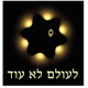 For Yom HaShoah, Holocaust Remembrance Day. A black and yellow fractal image recalling the yellow "Star of David" which the Nazis required Jews to wear during the Holocaust. Hebrew text reading, "Le Olam Lo Od" (Never Again) also appears. Never forget; never let it happen again.