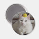 "Purrl" Magnet Mon chat blanc avec une balle de ping-pong sur sa tête. (2007)