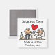 Magnet Réservez la date avec une jolie mariée et mariée ! Customiser avec les noms de la mariée et du marié, et la date du mariage dans l'espace prévu.