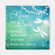 Magnet Réservez la date de libellules uniques et magnifiques illustrées d'aquarelle bleue et verte. Cet élégant design modèle dépeint les silhouettes blanches de 2 libellules volant ensemble avec des cordes romantiques brillantes de lumières drapées contre un ciel chaud de nuit d'été avec des étoiles. Ces bleus et verts personnalisés sauvent notre date magnets peuvent être facilement personnalisés avec vos propres informations. Catégorie : enregistrer la date des dessins de libellules; les idées de mariage de libellules. Couleurs : bleu turquoise profond, vert et blanc.