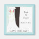 Magnet Réservez la date, avec une image mignonne d'une mariée et d'un marié. Ajoutez vos informations dans notre modèle convivial.