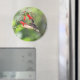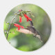 Aimant rond de 3" avec photo d'un colibri se nourrissant d'une fleur rouge