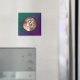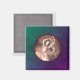 Ce modèle magnétique présente une illustration vintage de la danseuse La Belle Esmeralda du roman classique de Hugo "Le Hunchback de Notre Dame" contre un arrière - plan de vert vif et de violet profond.