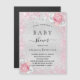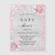 Un baby shower moderne et élégant, célébrant une petite fille. Faux argent à l'arrière - plan métallique décoré de faux parties scintillant rose, étincelles et fleurs. Personnalisez et ajoutez un nom et des détails du parti. Lettres de couleur noire. Peut être utilisé comme rappel Enregistrer la date pour votre invité.