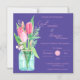 Romantic Tulip Square Wedding Invitation – Blush & Purple Floral Mason Jar Card . Purple & Blush Floral Wedding Invitation – Tulip Mason Jar Design . Invite guests to your wedding in style with this square floral wedding invitation, featuring a romantic blush pink and white layout on a rich purple textured background. A watercolor tulip bouquet in a mason jar adds charm and elegance, while a modern mix of script and serif fonts keeps it fresh and personal. This versatile square format is perfect for spring or garden weddings and coordinates beautifully with matching Save the Date and RSVP cards. Fully customizable with your wedding details.